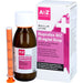 Schütteln Sie die Flasche vor dem Gebrauch!Öffnen Sie die Flasche, indem Sie den Verschluss nach unten drücken und ihn gleichzeitig in Pfeilrichtung drehen.Führen Sie die Spritze so in den Flaschenhals ein, dass sie fest sitzt.Drehen Sie die Flasche zum Füllen der Spritze auf den Kopf. Halten Sie die Spritze fest und ziehen Sie den Kolben sachte nach unten, um den Sirup bis zur gewünschten Markierung aufzuziehen.Drehen Sie die Flasche wieder um und ziehen Sie die Spritze unter vorsichtigem Hin- und Herdrehen aus dem Flaschenhals heraus.Um Ihrem Kind das Arzneimittel zu verabreichen, legen Sie das Ende der Spritze in den Mund des Kindes. Drücken Sie mit dem Kolben langsam die Flüssigkeit aus dem Zylinder der Spritze. Gehen Sie dabei langsam vor, um Ihrem Kind das Schlucken der Flüssigkeit zu ermöglichen.