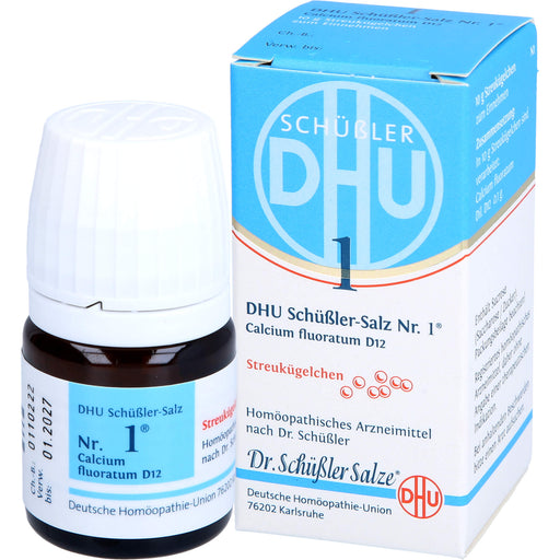 DHU Schüßler-Salz Nr. 1 Calcium fluoratum D12 Streukügelchen – Das Mineralsalz des Bindegewebes, der Gelenke und Haut – das Original – umweltfreundlich im Arzneiglas, 10 g Globuli