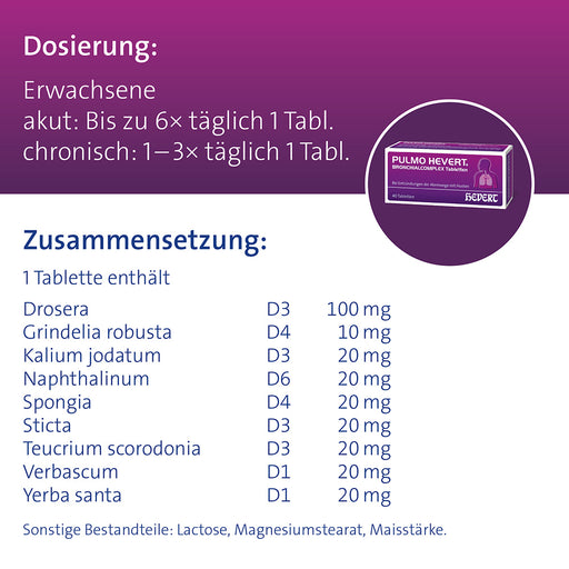 Pulmo Hevert Bronchialcomplex bei Entzündungen der Atemwege mit Husten, 40 St. Tabletten