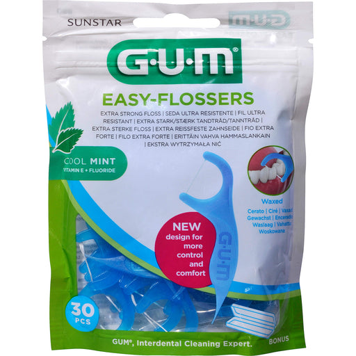 GUM Easy-Flossers + Fluorid & Vitamin E Zahnseide gewachst mit Griff, 30 St. Zahnseide