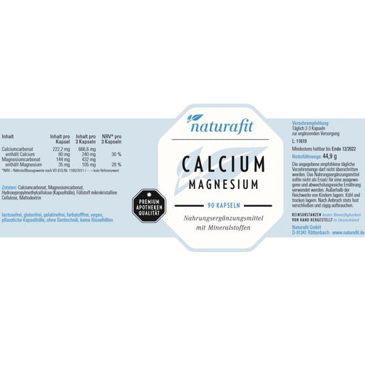 naturafit Calcium Magnesium Kapseln, 90 St. Kapseln