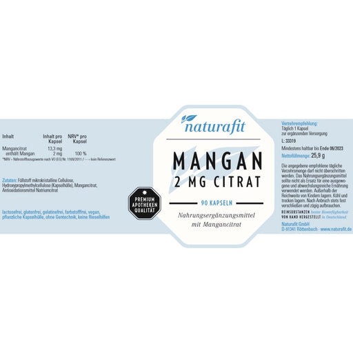 naturafit Mangan 2 mg Citrat Kapseln, 90 St. Kapseln