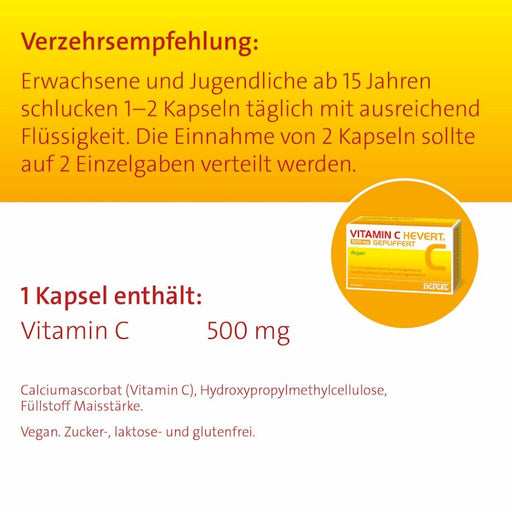 Vitamin C Hevert 500 mg gepuffert als magenfreundliches Multi-Talent für die Gesundheit, 60 St. Kapseln